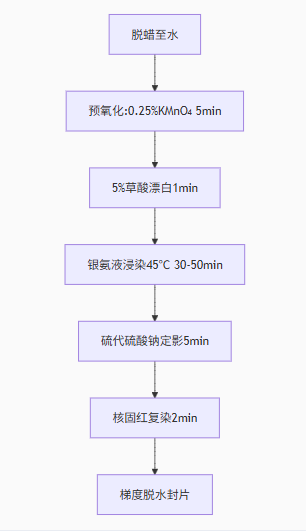 黑色素特异性染色基于黑色素颗粒的还原性特性,通过银氨反应实现选择性标记: